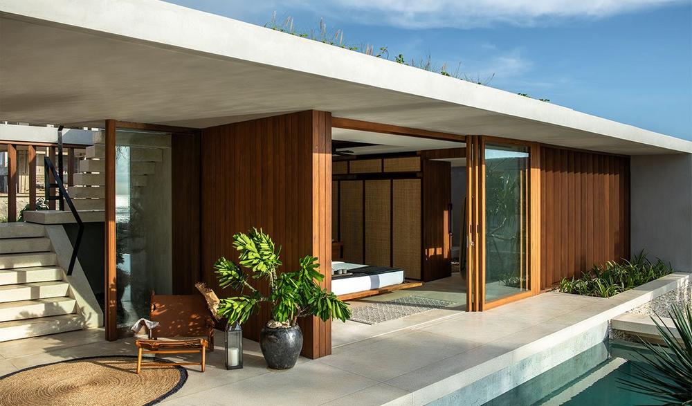 In den 67 Unterkünften – eine Kombination aus Studios, Suiten und Villen – kommen die Gäste mit der Geschichte dieses Ortes in Berührung. Die Farbgebung des Hotels in Naturtönen ist von der Savanne der Insel inspiriert. Neben lokaler Kunst, Materialien und dem traditionellen Handwerk der Insel, das in verschiedenen Räumen des Hotels in Szene gesetzt wird, sind auch visuelle Referenzen an Marapu, die Religion der Inselbewohner, zu sehen. Mit dieser vereinen die Einwohner der Insel Ansätze des Christentums und des Islams miteinander. Dem Reisenden wird durch diese Details die Einzigartigkeit Sumbas nähergebracht. Verantwortlich für die Umsetzung ist das in Jakarta ansässige Architektur- und Innenarchitekturbüro Bitte Design Studio, das sich in seinen Grundsätzen ebenfalls vollständig der umweltbewussten Architektur widmet, und sich somit als ideale Ergänzung für dieses Projekt erwies. Lokale und nachhaltig beschaffte Materialien werden im gesamten Hotel verwendet und fügen sich nahtlos in die moderne, klare Ästhetik ein, welche die unterschiedlichen Räume des Hotels ausmacht. Diese werden durch maßgeschneiderte Design-Elemente akzentuiert, wie beispielsweise handgeschnitzte Holzkopfteile an den Gästebetten, Ikat-Wandteppiche des indonesischen Künstlers Alexander Sebastianus Hartanto sowie weitere zeitgenössische indonesische Kunst, die in den Foyers ausgestellt ist. Ein Beispiel für das Zusammenspiel von französischem Savoir-Faire, Sumba-Ästhetik und luxuriösen Annehmlichkeiten ist die Verwendung von außergewöhnlichen Stoffen aus einer exklusiven Kooperation mit dem französischen Designer Maison Pierre Frey, die Sofas und Sessel zieren, sowie die Ausstattung mit Lautsprechern von Bang & Olufsen in den Villen.