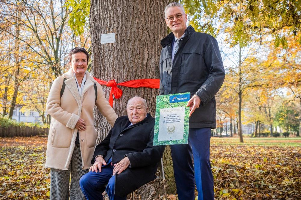 Mainova ehrt Dr. Ernst Gerhardt zum 100. Geburtstag mit einer Baumwidmung und pflanzt 99 weitere Bäume