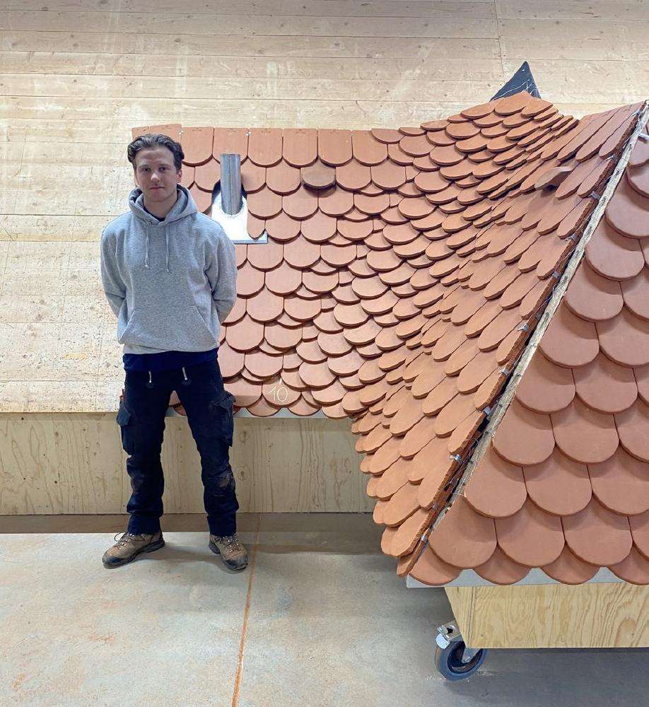 Seit dem Frühjahr 2021 wurden die Teilnehmer in Vollzeit auf ihre Meisterprüfung vorbereitet. Die Pandemie stellte dabei eine besondere Herausforderung für die angehenden Meister und ihre Ausbilder dar: Der Kursbeginn – eigentlich im Januar eines jeden Jahres – musste ins Frühjahr verschoben werden. Dennoch blieb die Zahl der 1.176 Unterrichtsstunden unangetastet. Von der Berechnung und Bemessung von Dachstühlen über die Kalkulation, Auftragsabwicklung, Materialkunde, Betriebswirtschaft und Betriebsführung bis zur Arbeitssicherheit und den Fachregelwerken und Verordnungen reichten die Inhalte des Theorieunterrichts. Im Praxisteil der Meistervorbereitung ging es um die Optimierung des in der Ausbildung und Gesellenzeit erworbenen Könnens in allen Bereichen der Dach-, Wand- und Abdichtungstechnik bis hin zur „Königsdisziplin des Dachdeckerhandwerks – der Schieferdeckung.