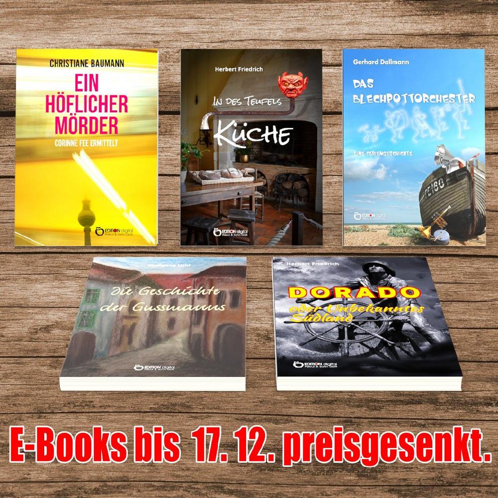 Viel Vergnügen auch beim Lesen der anderen vier Sonderangebote dieses Newsletter, weiter einen schönen Advent, bleiben Sie jetzt erst recht vorsichtig, trotz aller Corona-Widrigkeiten, aber vor allem schön gesund und munter und bis demnächst. Und haben Sie eigentlich schon alle Weihnachtsgeschenke beisammen? Was halten Sie zum Beispiel von E-Books?