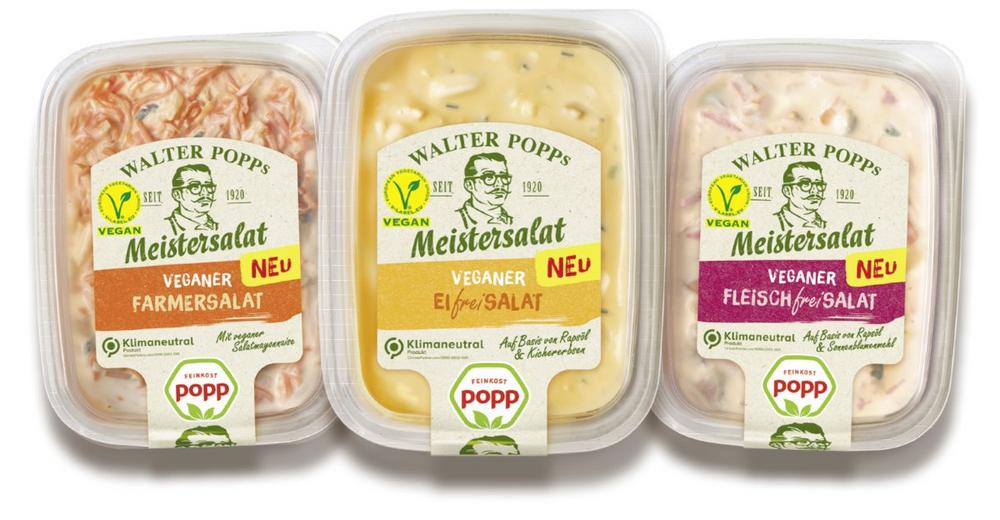 Die neuen pflanzlichen Salate sind nicht nur gut für das Tierwohl, sondern auch für das Klima. Popp stellt sie klimaneutral mit 100 % Ökostrom her. Mit dem V-Label (einem internationalen Qualitätssiegel für vegetarische und vegane Produkte) sowie dem „Klimaneutral“-Siegel von ClimatePartner bekennen die Salate auch optisch in den Kühlregalen des Lebensmittelhandels Farbe für vegane, umweltfreundliche Ernährung.
