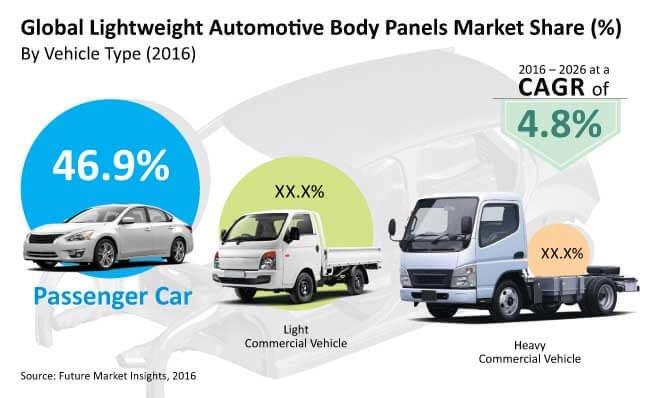 Lightweight Automotive Body Panels Market is expected to experience an impressive CAGR growth 4.8 % through 2016-2026