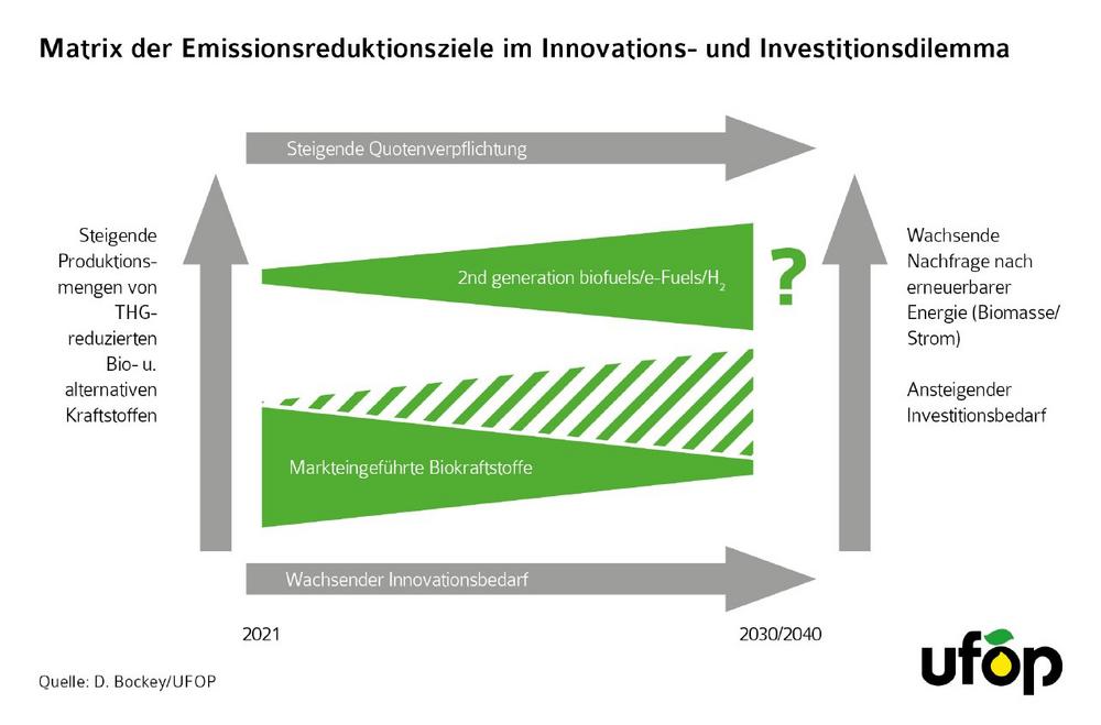 Dies muss mit abgewogen werden, wenn die Politik aktuell über die Zukunft der Biokraftstoffe aus Anbaubiomasse nachdenkt. Es geht nach Auffassung der UFOP nicht um mehr Biokraftstoffe, sondern darum, das bestehende und begrenzte Potenzial in der Nutzungseffizienz und Wertschöpfung strategisch weiterzuentwickeln. Voreilige Beschlüsse schaden der Landwirtschaft in ihrem Transformationsprozess und dem Klimaschutz im Verkehr, wenn notwendige Technologien bisher noch nicht verfügbar bzw. gemessen an den Investitionskosten erheblich teurer sind, wie die Abbildung grundsätzlich aufzeigt.
