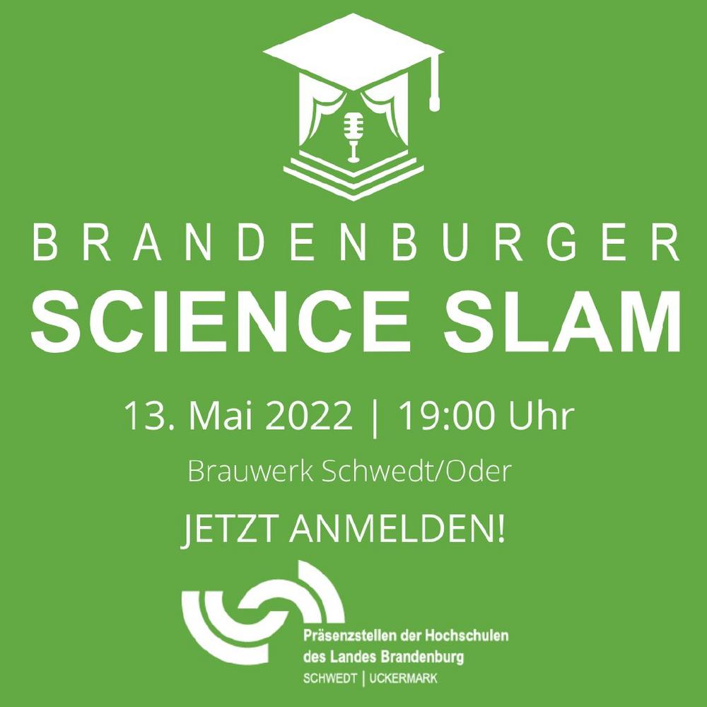 Sie sind herzlich eingeladen beim 1. Brandenburger Science Slam am 13. Mai 2022 teilzunehmen. Um eine vorherige Ankündigung wird gebeten.
