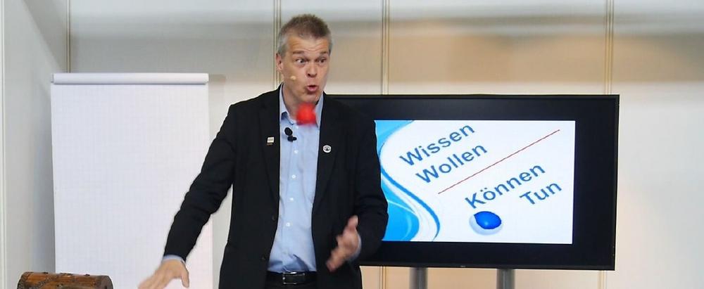 Organisationen benötigen in einem Umfeld permanenten Wandels vor allem eins: die Fähigkeit, sich zu verändern. Mittlerweile hat wohl jeder verstanden, dass Veränderungsprozesse im Job eher der Normalfall als die Ausnahme sind. Wandel ist allerdings nur dann erfolgreich, wenn Führungskräfte sich zunächst auf sich selbst konzentrieren. Denn Organisationen sind nur wandelfähig, wenn es die Führung ist! "Deswegen ist es enorm wichtig, wenn Führungskräfte sich bei Veränderungsprozessen zunächst auf sich selbst konzentrieren. Das funktioniert sehr gut über das Jonglieren", sagt Stephan Ehlers. Denn das Jonglieren mit Bällen ist ungewohnt und erleichtert den Umgang mit Wandel, weil man dabei lernt bzw. gezwungen wird, Ungewohntes aktiv zu tun. Man muss völlig neue Dinge ausprobieren und es braucht Ausdauer und Konbzentration.