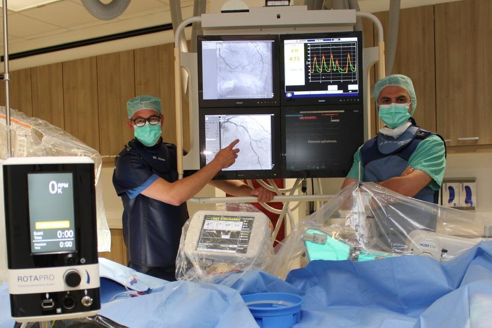 Kommt ein Patient mit diesen Symptomen ins Krankenhaus, wird in einer minimal-invasiven Operation über einen Katheter am Handgelenk Kontrastmittel in die Herzkranzader injiziert. Durch gleichzeitiges Röntgen werden die Herzkranzadern und Engstellen für den Kardiologen sichtbar. Behandlungsbedürftige Engstellen werden zunächst mit einem dünnen, weichen Draht überwunden. Der Draht dient für das weitere Vorgehen als Leitschiene. Im nächsten Schritt wird ein Ballon über den Katheter zur Engstelle vorgebracht. „Normalerweise reicht der Druck im Ballon aus, um die verengte Stelle auszudehnen“, erklärt Dr. Degen. Bei besonders schweren Verkalkungen, lässt sich der Ballon jedoch nicht öffnen.