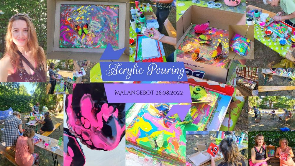 Glitzerregen und Schmetterlinge: Acrylic Pouring Malnachmittag mit Künstlerin Anna Pianka am 26.08.2022