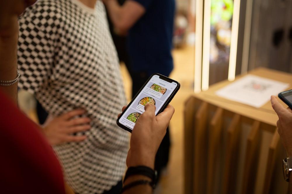 The asset in the Semblr is a KUKA small robot. He takes a bowl after the digital order, shortly before the scheduled pickup time. With this, he sequentially heads for those serving chambers that contain the desired ingredients. An intelligent, hygienic dispensing system developed by Karakuri ensures that everything ends up in the bowl in the ordered quantity. In smooth movements, without spilling, the dispensers dispense rice, chicken, beef, tofu and/or vegetables of choice from the top. Sauce is added, and lastly toppings such as herbs or nuts. The finished dish, along with a receipt that clearly assigns the meal to an orderer, is now ready for pickup.
