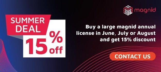 Der Event-Plattform-Provider Magnid GmbH offeriert seinen Kunden für die kommenden Wochen einen attraktiven Summerdeal: Noch bis Ende August gibt es 15 Prozent Rabatt auf den Kauf einer großen Magnid Lizenz – gültig für ein Jahr*. Die Lizenz umfasst unter anderen eine unbegrenzte Anzahl von Veranstaltungen.