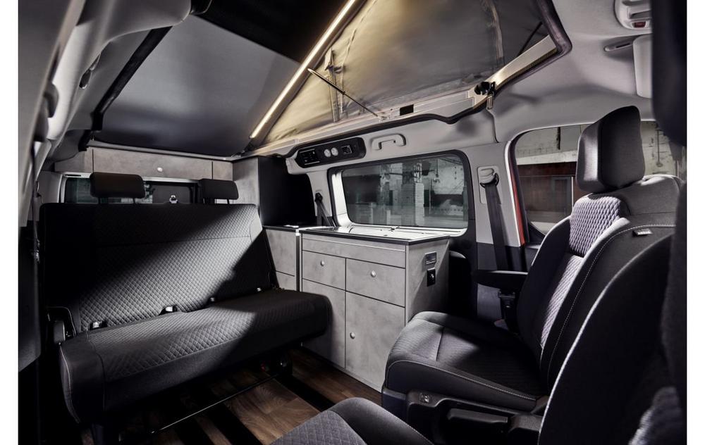 Wie bei jedem Crosscamp ist auch beim vollelektrischen Crosscamp Flex alles an Bord, was die Camper für eine entspannten Übernachtungstour benötigen: Zur Ausstattung gehören viele praktische Features wie um 180 Grad drehbare Vordersitze, Küchenblock, Schränke und Spüle oder auch Gaskocher sowie integrierte Frische- und Abwassertanks. Die Sitzbank im Fond wird in wenigen Handgriffen zum praktischen Doppelbett; Raum für zwei weitere Schlafplätze bietet ein Aufstelldach, so dass insgesamt bis zu vier Personen im Crosscamp Flex in der Natur träumen können.