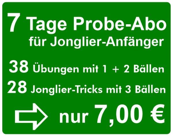 Die Online-Akademie Jonglieren ist Deutschlands größtes Jonglier-Lernportal für Anfänger und Fortgeschrittene und bietet ab sofort ein 7-Euro-Ticket an, das für 1 Woche (7 Tage) vollen Zugriff sowohl auf ein Jonglier-Lernprogramm mit 34 Video-Tutorials ermöglicht als auch auf 37 weitere Wurf- und Fangübungen mit 1 und 2 Bällen  anbietet.