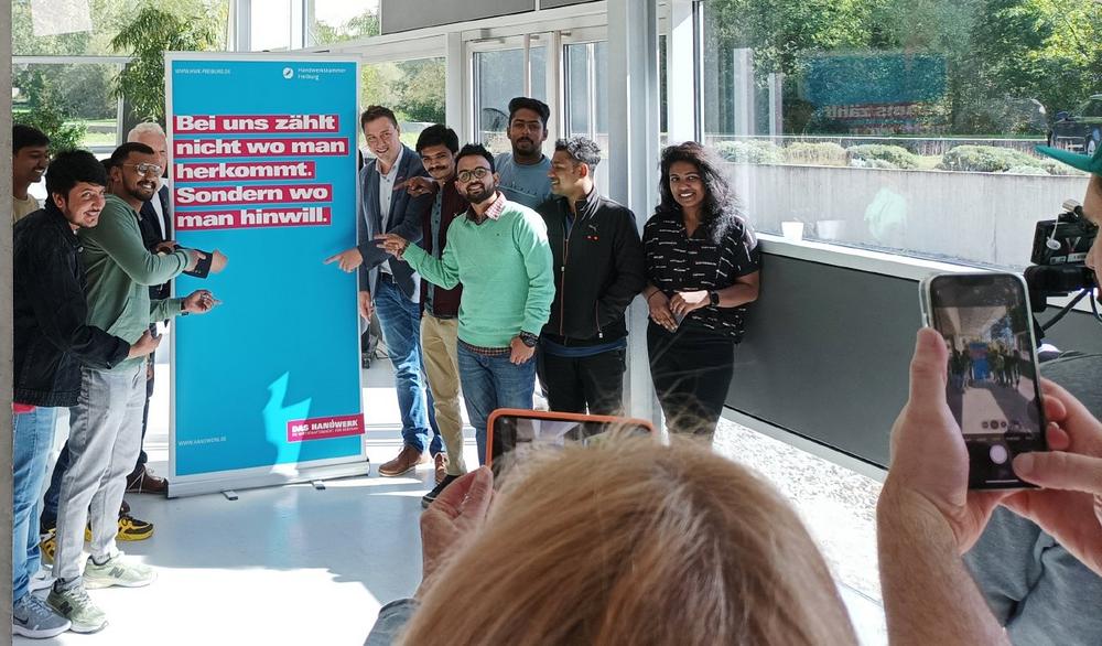„Wir haben alle viel Zeit investiert“, erläutert Dr. Handirk von Ungern-Sternberg, Mitglied der Geschäftsleitung der Handwerkskammer Freiburg die bereits geleistete Arbeit. Gemeinsam mit der Partneragentur in Indien wurden von Kammer, Innung und Betrieben geeignete Bewerberinnen und Bewerber gesucht – in einem monatelangen Auswahlprozess. Mehrere Online-Auswahlgespräche und Vorbereitungstermine standen auf dem Programm, bis klar war, dass 13 Teilnehmerinnen und Teilnehmer kommen können. Nun stellen die Ausbildungsbetriebe neben einer aufgestockten Ausbildungsvergütung auch die Unterkunft und leisten Mehrarbeit bei der Betreuung. Auch die Beschäftigten leisten zusätzliche Arbeit, um die neuen Kolleginnen und Kollegen einzulernen und einzuarbeiten.
