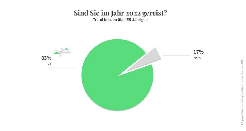 1. Mehr als 4 von 5 der Befragten im Alter von 55 bis 66+ Jahren sind in 2022 bereits verreist (83 %).