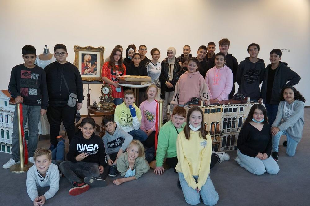 Eine Delegation von Schüler*innen und Lehrkräften aus den teilnehmenden Jahrgangsstufen 6 (Musik und Deutsch), 7 (Darstellen und Gestalten) und 9 (Kunst) der Gesamtschule im Essener Stadtteil Schonnebeck sowie deren didaktischer Leiter Stefan Mühlhaus durften am Dienstag, 25. Oktober schon einmal ein wenig Theaterluft schnuppern: Gemeinsam mit Karin Müller, Geschäftsführerin der Theater und Philharmonie Essen, Dr. Merle Fahrholz, Intendantin des Aalto-Musiktheaters und der Essener Philharmoniker, Projektleiterin Marie-Helen Joël, den AkzepTANZ-Workshopleiterinnen, Christof Wolf von der Stiftung Zollverein und Dr. Anneliese Rauhut von der GFF setzten sie den Startschuss für ein weiteres außergewöhnliches Schuljahr. Auf die Jugendlichen warten Proben- und Vorstellungsbesuche und sie werden wertvolle Einblicke erhalten in die Abläufe des Tanz-, Musiktheater- und Konzertbetriebes. Zudem werden sie die Möglichkeit haben, das Welterbe Zollverein besser kennenzulernen. Geht es anfangs noch um einführende Veranstaltungen, setzen sich die Jugendlichen ab Dezember in Tanz-, Szenen- und Kunst-Workshops mit einem musikalischen Schwerpunkt-Thema auseinander, wodurch die Akzeptanz klassischer Musik im Alltag gefördert wird. Diesmal richtet sich der Blick auf den Komponisten Antonio Vivaldi und die Lagunenstadt Venedig. Einen kleinen Vorgeschmack auf dessen wunderbare Musik gab es bereits heute Nachmittag mit einem Beitrag von Florian Geldsetzer, Konzertmeister, Annette Meier-Krüger, Bratschistin der Essener Philharmoniker, und Aalto-Pianist Boris Gurevich.