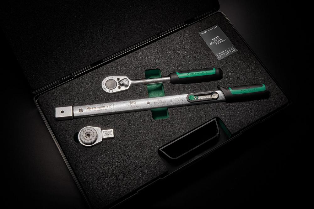 Für einen einzigartigen Look des Drehmomentschlüssels und der Knarre sorgt eine 160 Jahre-Jubiläumsgravur, die exklusiv für das Set entworfen wurde. Zusätzlich befindet sich in jedem Set eine Jubiläumsplakette mit der individuellen Limitierungsnummer.