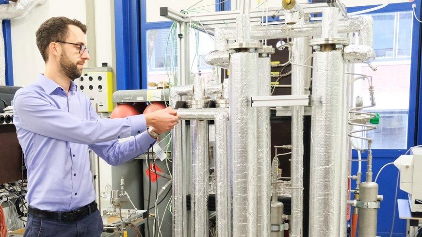 Florian Kiefer und sein Team forschten während rund drei Jahren an einem neuen Reaktorkonzept mit Zeolith-Pellets, die als poröser Katalysatorträger fungieren und gleichzeitig das während der Methanisierungsreaktion entstehende Wasser adsorbieren. Mit im Fokus stand dabei das «Upscaling» des Verfahrens – das heisst, ein Konzept, wie dieses Verfahren für Grossanlagen umgesetzt werden kann. Dazu hat die Empa mit verschiedenen Industriepartnern zusammengearbeitet. Entscheidend für die Reaktorauslegung und Prozessplanung ist dabei vor allem die Regenerationszeit, also die für die Trocknung des Reaktors benötigte Zeit. Um eine kontinuierliche Methanproduktion zu gewährleisten, müssen deshalb mindestens zwei Reaktoren abwechselnd arbeiten. Für die Trocknung der Reaktoren ist zudem ein geeignetes Wärmemanagement zentral, entweder durch die Ableitung der Wärme aus dem Reaktor oder durch die interne Speicherung von Wärme im Katalysatorbett. In diesem Bereich hat Kiefers Team ein Patent angemeldet.