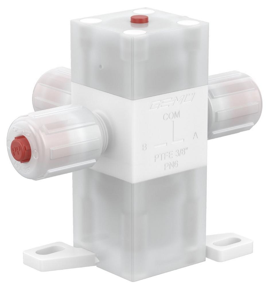 Das neue 3/2-Wege Prozessventil GEMÜ C58 iComLine eignet sich für hochreine und aggressive Medien. Alle medienberührenden Teile bestehen aus reinem und sehr beständigem PTFE. Das Verhältnis zwischen Footprint und Durchflussmenge ist herausragend. Daher eignet sich dieses Membransitzventil besonders für Anwendungen im Prozessbereich sowie auf der Verteilerebene einer Halbleiterfertigung.