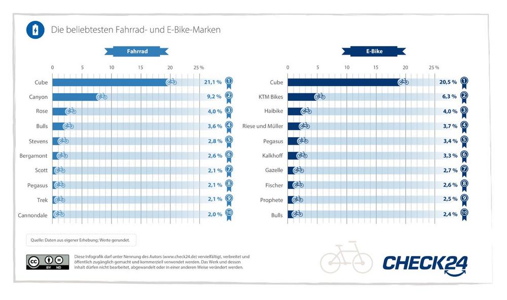 Fahrräder und E-Bikes: Cube mit Abstand die beliebteste Marke
