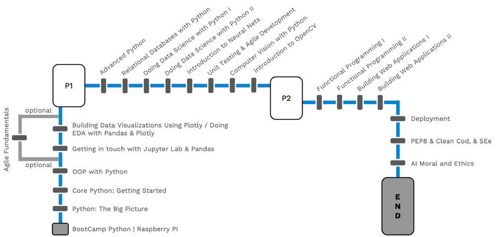 ,,Die Ausgangsfrage war: Wie stellen wir sicher, dass alle Teilnehmer*innen motiviert am Training teilnehmen, echte Fähigkeiten erlernen und diese auch im Unternehmen sinnvoll einsetzen können? Wir haben uns dazu Trainingskonzepte überlegt, die Abwechslung und Austausch ermöglichen. Diese waren zum Beispiel das Bootcamp, wo bereits ganz am Anfang des Trainings die Motivation und der Teamgeist der Teilnehmenden entfacht wird, indem sie eine Woche lang in Vollzeit in das Themengebiet eintauchen. Danach wechseln sich die arbeitsbegleitenden Selbstlernphasen (4 Stunden pro Woche) und die Vollzeit-Projektwochen ab, sodass der Arbeitsalltag nicht beeinträchtigt wird. In den Projektphasen setzen die Mitarbeiter*innen in jeweils zwei Arbeitswochen ihr theoretisches Wissen in die Praxis um und programmieren kleine, autonom fahrende Raspberry Pi Autos – also auch ein echter Anwendungsfall für das Unternehmen. Eine weitere Innovation ist der sogenannte Coach-Market, an dem die Themen der Woche zusammengefasst und gefestigt werden. Die Teilnehmenden können offene Fragen mit den Trainer*innen klären und ihre Erfahrungen mit der Gruppe teilen. Die Trainer*innen führen mit den Teilnehmern auch Übungen durch, um deren Wissen weiter zu festigen. Der Coach-Market wird dabei von uns, University4Industry, in Form eines „Embedded Trainerteams“ inhaltlich konzeptioniert und organisatorisch umgesetzt, um den Aufwand für die Trainer*innen und den Kunden minimal zu halten.”