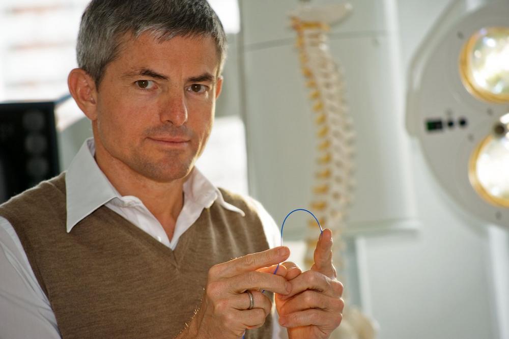 Zu diesen Alternativen gehört beispielsweise eine Laserbehandlung beim Bandscheibenschmerz und bei Bandscheibenvorwölbungen. Der Eingriff kann in leichter Dämmerschlaf-Narkose durchgeführt werden. „Dabei überprüfen wir mit einer dünnen Nadel und unter Bildwandlerkontrolle sowie Injektion eines klaren Kontrastmittels zunächst, ob die Bandscheibe auch wirklich die Ursache für die Schmerzen ist. Wenn ja, führen wir dann eine haarfeine Laserphase durch die liegende Nadel in die Bandscheibe ein und leiten Laserimpulse in das Bandscheibeninnere.“ Das hat gleich mehrere Effekte: die Bandscheibenvorwölbung schrumpft, schmerzleitende Fasern werden durchtrennt, die Schmerzursache beseitigt und durch die Wärmewirkung kommt es zu einem "Verschweissen" von Bandscheibenrissen.