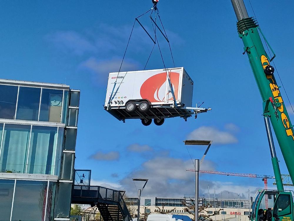 Hotmobil Deutschland lieferte eine mobile Heizzentrale mit einer Leistung von 350 kW an das SEA LIFE Konstanz. Um diese möglichst nahe an das Gebäude heranzubringen, wurde ein Stellplatz auf einer Terrasse neben dem SEA LIFE geplant. Die Terrasse liegt inmitten eines Wasser-Biotops, sodass die Heizzentrale nicht einfach an den, für sie vorgesehenen, Platz gefahren werden konnte. Um den Wassergraben zu überwinden, musste ein Kran eingesetzt werden, der den Heizanhänger hoch in die Luft hob, um diesen an seinem vorgesehenen Platz auf der Terrasse wieder abzustellen. Das Ozeanbecken befindet sich im oberen Stock des Gebäudes. Um das Becken erreichen zu können, wurden mehr als 60 m Verbindungsleitungen für den Vorlauf verlegt. Der Schlauch für den Rücklauf war bereits an die vor Ort installierte Pumpe angeschlossen. Durch diese Maßnahme sollte das Wasser im Becken auf eine Temperatur von 25 °C erwärmt werden. Hierfür wurde das kalte Wasser aus dem Becken über den Kaltwasserzulauf in den Wärmetauscher der Heizzentrale gepumpt, dort aufgeheizt und dann mittels Warmwasserleitung in das Becken zurückbefördert.