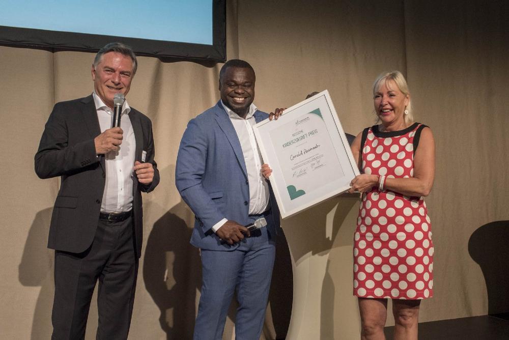 Ein Höhepunkt des Abends war die Verleihung des Deutschen Kinderzukunft-Preises, mit dem die renommierte Stiftung prominente Persönlichkeiten ehrt, die sich in besonderem Maße für Kinder in Not eingesetzt haben. Asamoah nahm als diesjähriger Preisträger die Ehrung persönlich entgegen. „Mit dem Deutschen Kinderzukunft-Preis darf ich in diesem Jahr die Gerald Asamoah Stiftung für ihre beispielhafte Arbeit und den unermüdlichen Einsatz für herzkranke Kinder auszeichnen. Kindern in Not zu helfen ist in unser aller Verantwortung, denn Kinder sind unsere Zukunft. Das Engagement und der Einsatz von Herrn Asamoah sind bemerkenswert. Damit ist er ein Vorbild für uns alle“, so Digitalministerin Simenus, die den Preis überreichte. Das Preisgeld in Höhe von 10.000 Euro kommt der Gerald Asamoah Stiftung für herzkranke Kinder zugute.