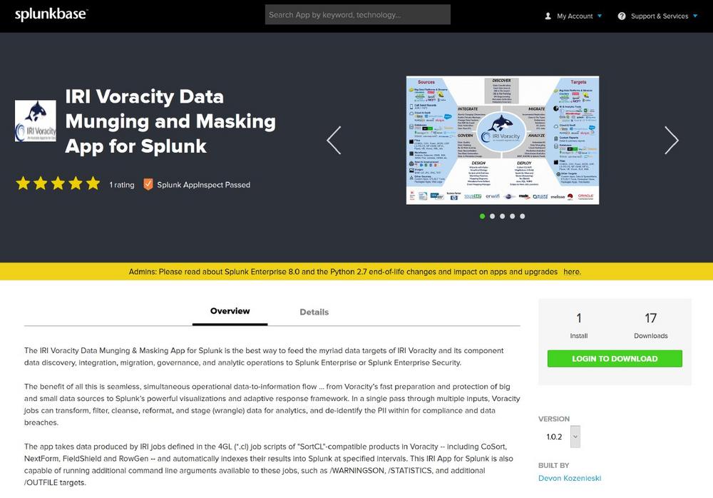 IRI hat eine neue, kostenlose App für Splunk Enterprise- und Enterprise Security-Anwender entwickelt, die nahtlos Daten aus jedem Data Wrangling- oder Protection-Job der Voracity-Plattform indiziert. Die App – verfügbar auf Splunkbase – ist der moderne Nachfolger des 2016er Voracity-Add-ons für Splunk und eine Alternative zur Verwendung von Splunk Universal Forwarder zur Indizierung der Daten.