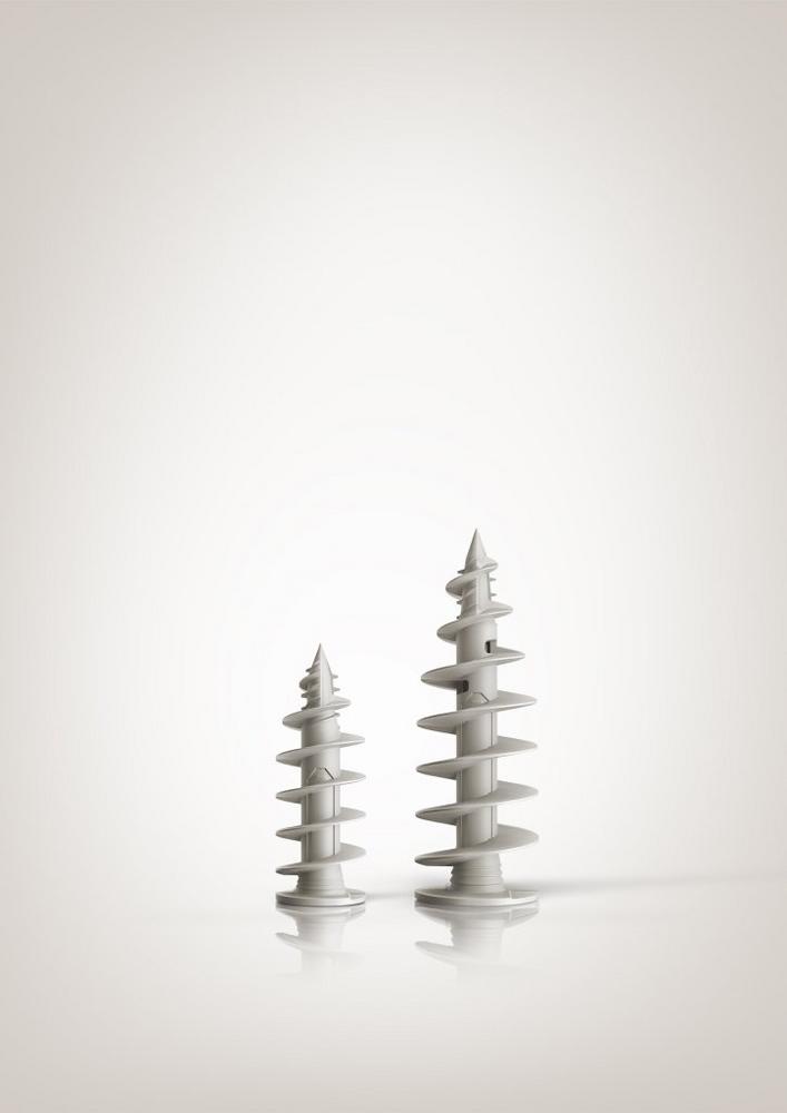 Dank ihrer kombinierten Zentrier-, Fräs- und Schneidefunktion der Dübelspitze können die Dübel punktgenau eingeschraubt werden. Sie verankern formschlüssig im Dämmstoff, ohne den Putz zu zerstören. Der Kraftaufwand ist dabei denkbar gering.
