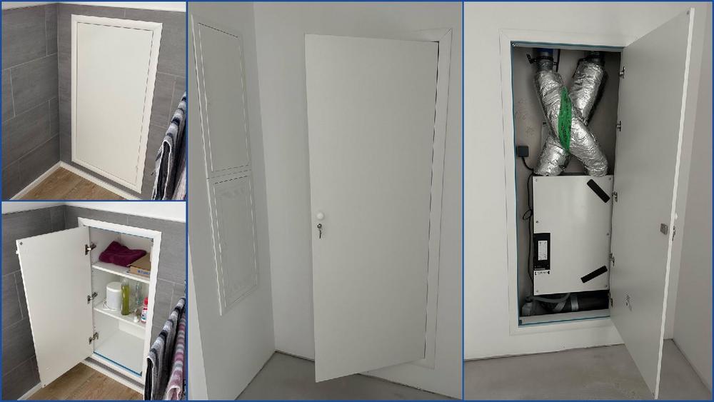 Im Kniestock/Drempel unter der Dachschräge ist oft ungenutzter Platz. Durch Kniestocktüren in der Abseitenwand gewinnt man diesen wertvollen Stauraum. Auch als Türe vor Zählern, Wartungseinheiten und Heizungsventilen oder als wandbündiger Einbauschrank oder als Badmodul sind Kniestocktüren einsetzbar.