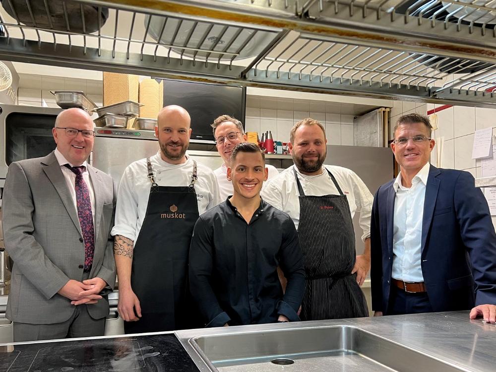 Der große Abschlussabend findet dieses Jahr am Samstag, 09. März 2024, im Gasthof Alter Brunnen in Marloffstein, statt, erstmalig mit einem Hobbygastkoch. In Zusammenarbeit mit Fritz Striegel jr. konnte der Bundestagsabgeordnete Stefan Müller gewonnen werden, der als Hobbykoch für einen der sieben Gänge verantwortlich ist. Zusammen mit den Erlanger Köchen Dominic Polster, Zacharias Dengler und Fritz Striegel jr. entstand so ein abwechslungsreiches Menü. Unterstützt werden sie zusätzlich noch von zwei weiteren Gastköchen: Santiago Estrada Lozana von Santiago’s Kitchen setzt Akzente aus der südamerikanischen Küche. Marco Hollbauer vom Hotel HerzogsPark verführt durch seine regionale Küche. Begleitet wird der Abend durch verschiedene lokale Winzer, die zu jedem Gericht den passenden Tropfen servieren.
