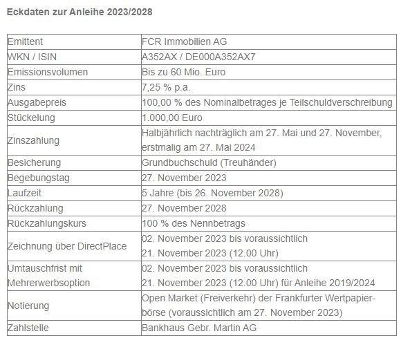 Der von der Luxemburgischen Finanzaufsicht CSSF gebilligte Wertpapierprospekt ist maßgeblich für das Angebot. Er ist auf der Website der Emittentin unter https://fcr-immobilien.de/anleihe2023-2028/ abrufbar.