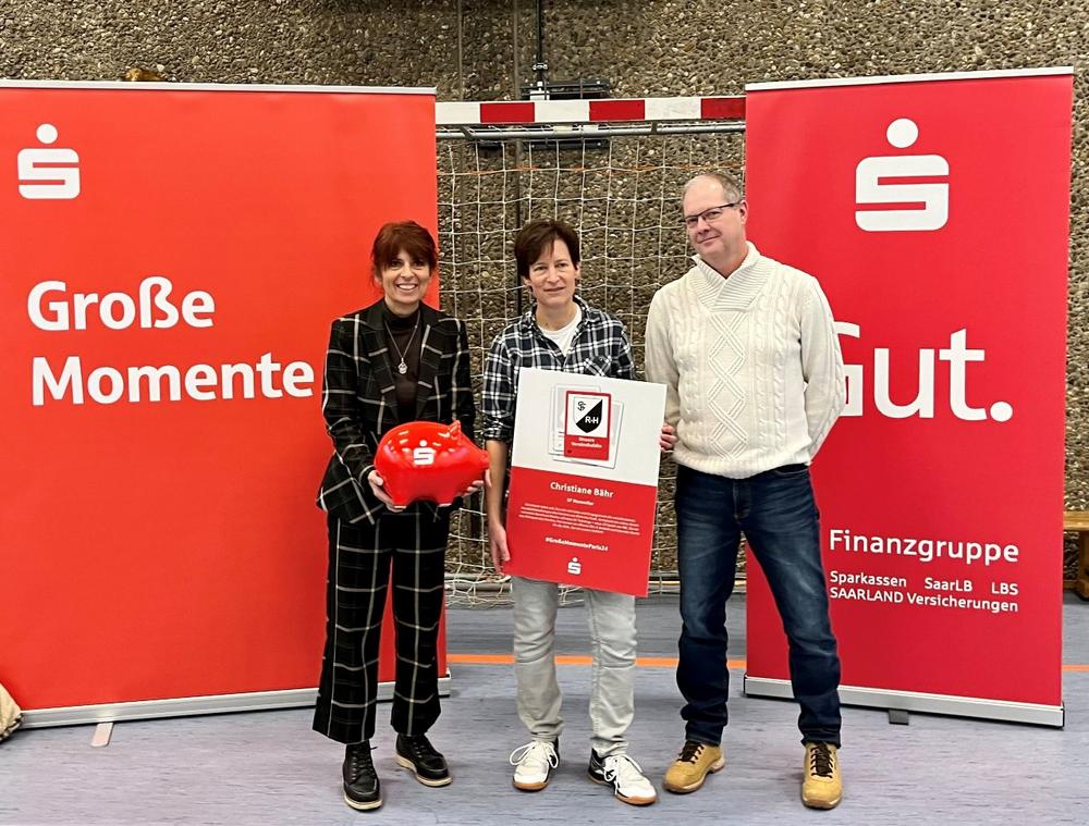 Cornelia Hoffmann-Bethscheider, Präsidentin des Sparkassenverbandes Saar, hat bei einer Feierstunde im Vereinsheim der Sportfreunde Rilchingen-Hanweiler (SF Hanweiler) Christiane Bähr, Trainerin und Abteilungsleiterin Handball des Vereins, zur Landesgewinnerin der Aktion „Vereinsheld:innen gesucht“ gekürt. Die Sparkassen-Finanzgruppe Saar ehrt mit diesem Preis ehrenamtliches Engagement im Sport.