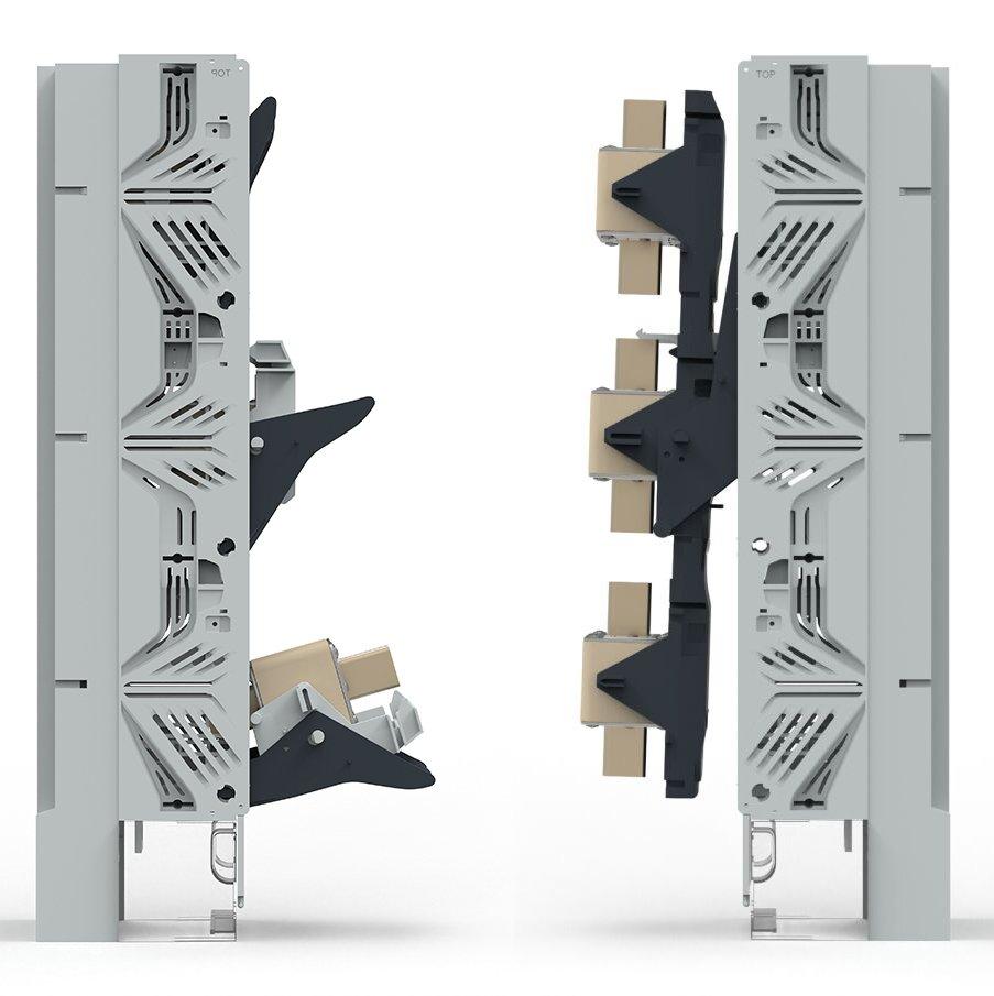 Bei dem einzigartigen Schaltmechanismus werden die NH-Sicherungsmesser zuerst von den Sicherungskontakten auf beiden Seiten in paralleler Übersetzung freigegeben, um eine bessere Lichtbogenunterbrechung zu erreichen. Die vollständige Bewegung ist sicherer als andere Lösungen, da sie dem Benutzer beim vollständigen Öffnen der Sicherungsabdeckungen einen Kontaktschutz nach IP20 gewährleistet. Parkpositionen für Wartungsarbeiten und Vorhängeschlösser in der offenen, geschlossenen und Parkposition machen diesen Sicherungslasttrennschalter zum sichersten auf dem Markt.