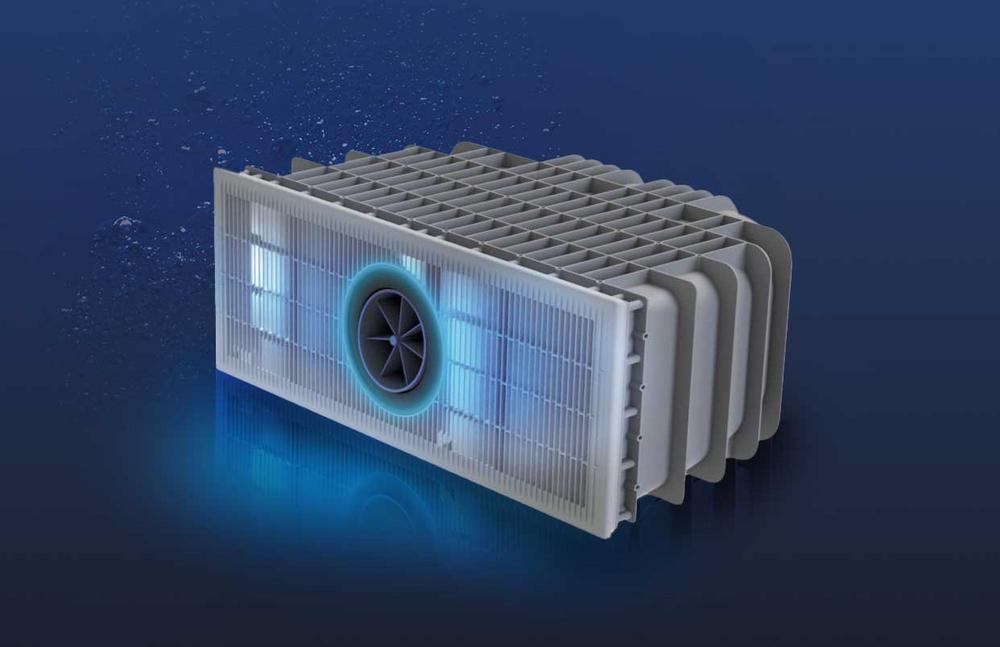 Zum Schutz der Schwimmer ist der Einbauschacht mit einem Abdeckgitter aus hochwertigem Kunststoff ausgestattet. Es lässt sich durch einfaches Klicken mit dem Schacht verbinden. Für Liebhaber des klassischen Edelstahl-Looks ist darüber hinaus ein Edelstahlgitter lieferbar. Der Poly-Schacht ist mit 970 x 360 x 515 mm sehr flach, kann aber trotzdem alle Turbinengrößen aus dem BINDER-Produktprogramm aufnehmen. Durch den Verzicht auf harte Kanten wurden zudem die Strömungseigenschaften von Schacht und Abdeckgitter optimiert.