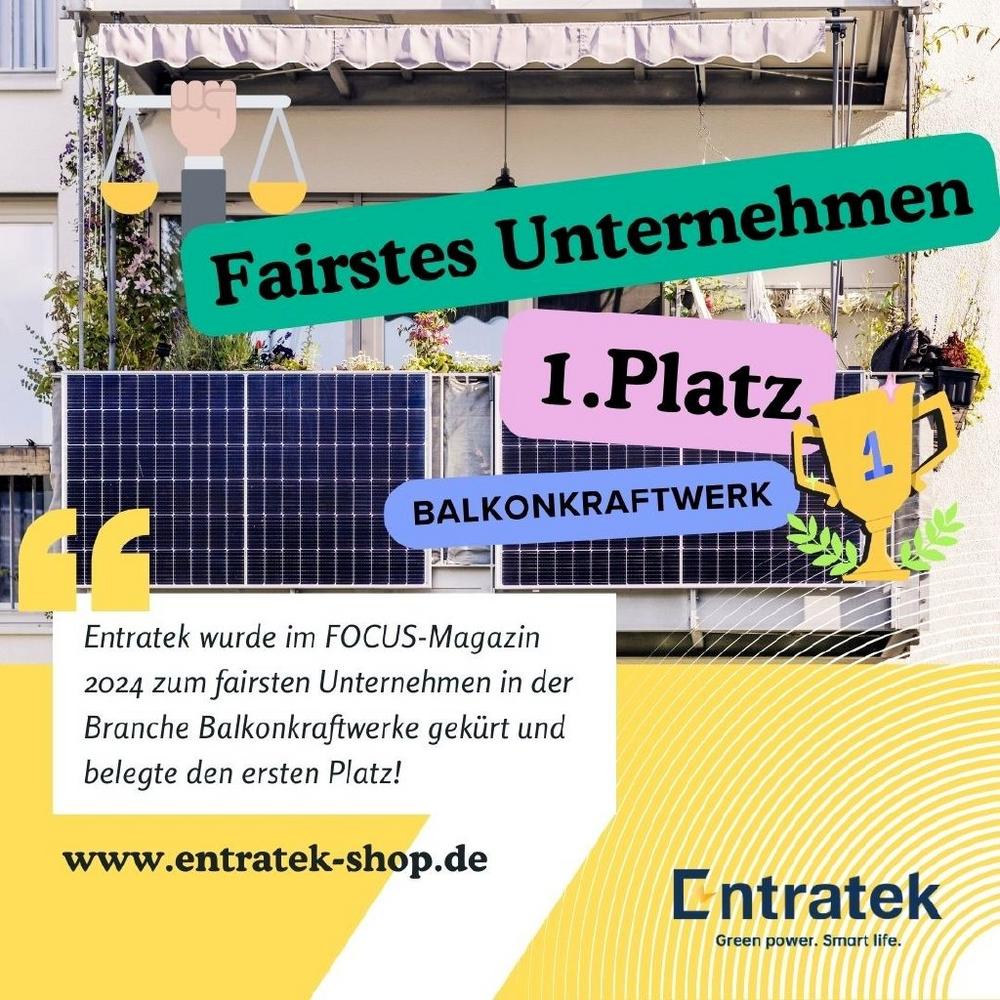 Entratek-Shop.de als „Fairstes Unternehmen“ in der Branche „Balkonkraftwerke“ ausgezeichnet