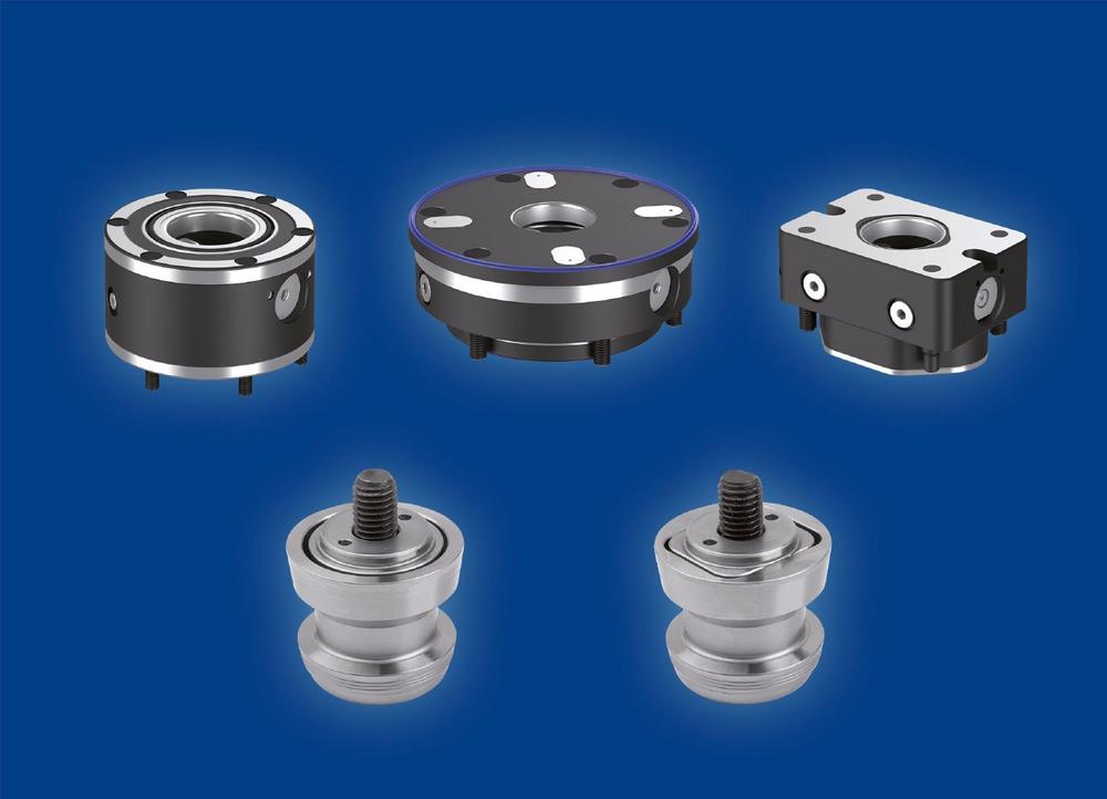 Die 5-Achs-Modul-Spannsysteme in den Größen 50, 80 und 138 wurden speziell für die störkantenfreie 5-Seiten-Bearbeitung entwickelt und bieten durch ihren modularen Aufbau eine Vielzahl an Kombinationsmöglichkeiten. Die Systemgröße 80 hat KIPP aktuell um drei weitere Basismodule VARIO, DUO und Doppelspannung ohne Fuß ergänzt. Dank einer großen Spannbolzenvielfalt lassen sich die Systeme optimal an jedes Werkstück anpassen. Hierzu gehören auch weitere neue Ausgleichsbolzen.