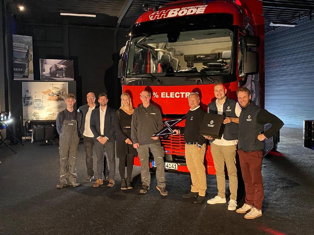 Renault Trucks übergibt einen Renault Trucks E-Tech T SZM an die Spedition Bode. Als umweltbewusstes Unternehmen möchte die Firma Bode zunehmend seine Flotte elektrifizieren. Der Renault Trucks E-Tech T macht den Anfang und elektrifiziert den Verteilerverkehr in und um Lübeck.