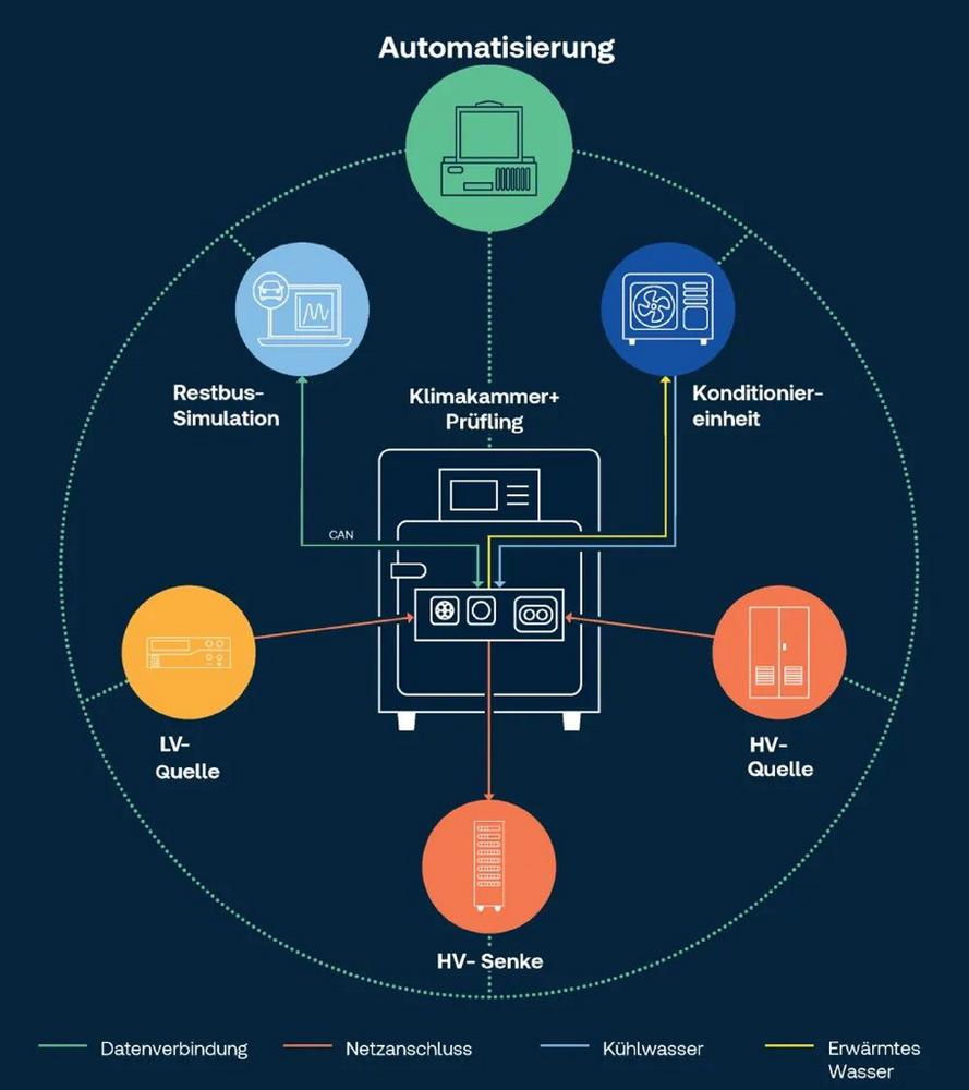 • Elektrische Prüfungen: Sie stellen sicher, dass Bauteile in Elektrofahrzeugen unter hohen Spannungen sicher und zuverlässig funktionieren; dazu gehören Tests wie Isolationswiderstandsmessungen, Überschlagsspannungstests und Temperaturbelastungstests.