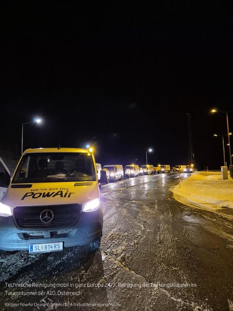 Ein aktuelles Beispiel unserer Expertise: die Reinigung von über 120 Lüftungsklappen im Tauerntunnel (A10, Österreich). Dieser Auftrag wurde von der ASFINAG unter strikten Zeitvorgaben vergeben und in einer Nachtschicht erfolgreich umgesetzt. Ein zwölfköpfiges Team mit sieben Einsatzfahrzeugen, darunter sechs Kompressoren von Atlas Copco, sorgte für eine perfekte Reinigung ohne Rückstände – zur vollsten Zufriedenheit des Kunden.