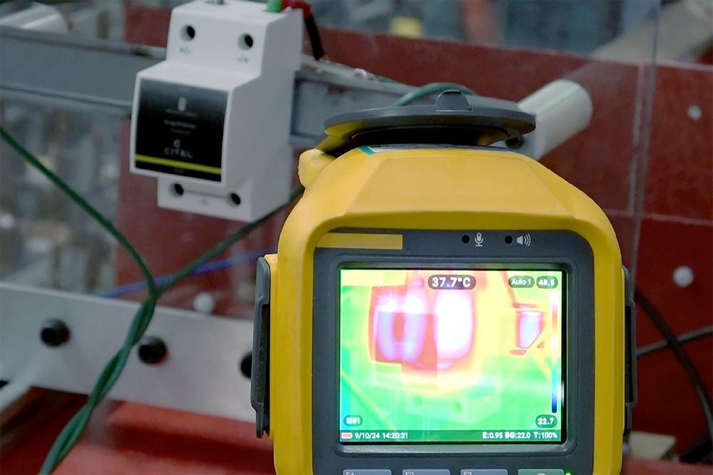 Die IEC-Norm schreibt für diesen Failure Mode Behaviour Test (auf Deutsch: SPD-Ausfallverhalten) u.a. vor, dass der Ableiter den Stromfluss unterbrechen muss, dass das Gehäuse nicht beschädigt werden darf und dass das Indikatorpapier, das um den Ableiter gewickelt wird, kein Feuer fangen darf. In der Norm ist definiert, dass sich die Ableiter während des Ableitvorgangs um maximal 120 Kelvin über Raumtemperatur erhitzen dürfen. Fünf Minuten nach dem Ableitvorgang müssen die Geräte wieder auf Raumtemperatur plus 80 Kelvin abgekühlt sein, um den Test zu bestehen. Bei der DPVN-Serie zeigten die Wärmebildkameras Raumtemperaturen von 22 bzw. 23 Grad Celsius an. Die Geräte erwärmten sich maximal auf 38 Grad Celsius, also nur um 15 bzw. 16 Kelvin.