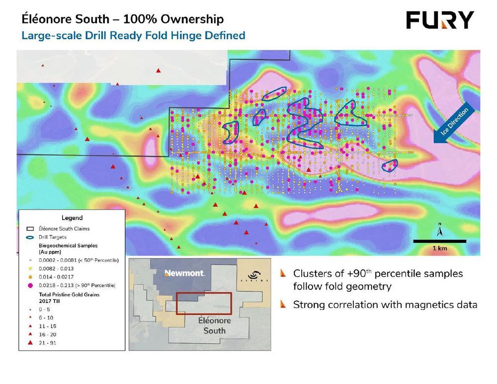 "Since acquiring 100% ownership of the Éléonore South joint venture earlier this year from Newmont, the Éléonore style anomaly has been at the top of our prospective list," commented Tim Clark, CEO of Fury. "Given the size, scale, and proximity to Newmont’s Éléonore Mine, we believe any success could create potential upside for investors and thus we are excited to commence drilling in Q1 of 2025."