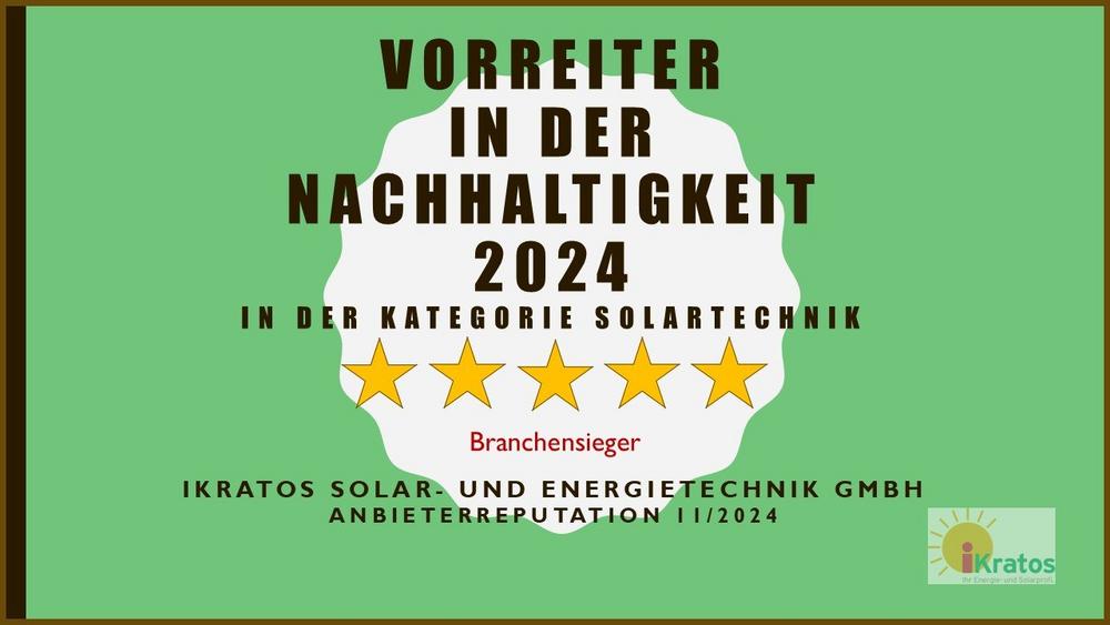 iKratos GmbH, Spezialist für Photovoltaik und Wärmepumpen mit Sitz in Weißenohe bei Nürnberg, wurde von der Frankfurter Allgemeinen Zeitung (FAZ) als einer der Vorreiter in der Nachhaltigkeit 2024 ausgezeichnet.