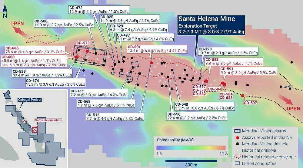 Meridian Drills Significant High-Grade VMS Gold Mineralization: 75.6m @ 4.6g/t AuEq (3.0g/t Au, 1.0% Cu, 30.2 g/t Ag & 2.5% Zn) at Santa Helena