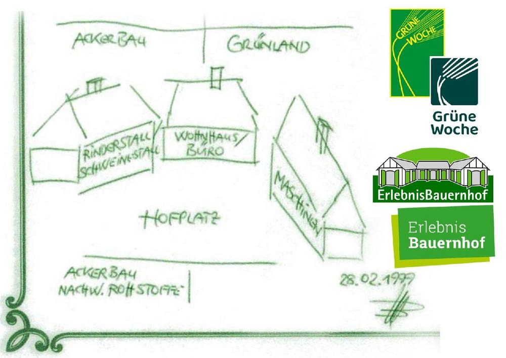 Anziehungspunkt ist immer wieder die Messehalle 3.2 unter dem Berliner Funkturm, in der sich die deutsche Landwirtschaft präsentiert. Nach der Grünen Woche 1999 reifte die Idee, den überwiegend großstädtischen Besuchern die Arbeit der Bauernfamilien realitätsgetreuer näherzubringen. Wie dies aussehen könnte, skizzierte der damalige i.m.a-Geschäftsführer Hermann Bimberg auf einer Serviette: Kern der 6.000 m2 großen Halle war ein Dreiseithof aus stilisierten Bauernhäusern, in denen Rinder- und Schweine sowie Landtechnik gezeigt werden sollten. Zudem sollten Ackerbau und Grünlandbewirtschaftung dargestellt sowie nachwachsende Rohstoffe thematisiert werden.