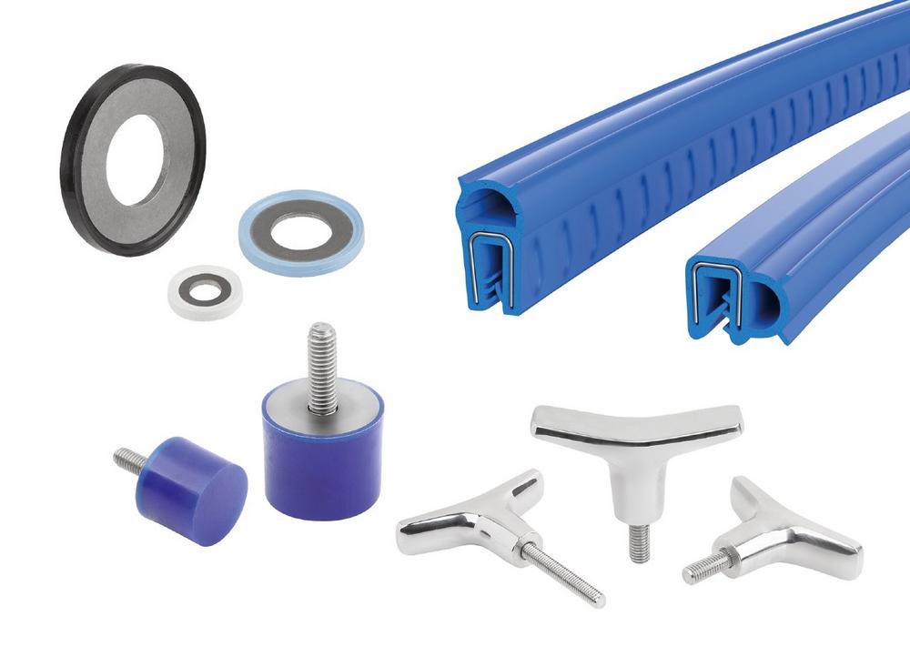 Für den Schutz von Geräten und Oberflächen bietet KIPP FDA-konforme Gummipuffer (K2233, K2234 und K2235) in verschiedenen Ausführungen an, wahlweise mit Innen- oder Außengewinde. Die Puffer absorbieren Stöße und minimieren in hygienesensiblen Bereichen Schäden an Maschinen und Anlagen ohne dabei die Sicherheit der Produkte zu gefährden. Das verwendete blaue Silikon weist eine Härte von 55° Shore A auf und kann in einem Temperaturbereich von -30 bis +180 °C zum Einsatz kommen. Die Metallteile werden aus Edelstahl 1.4401 gefertigt.