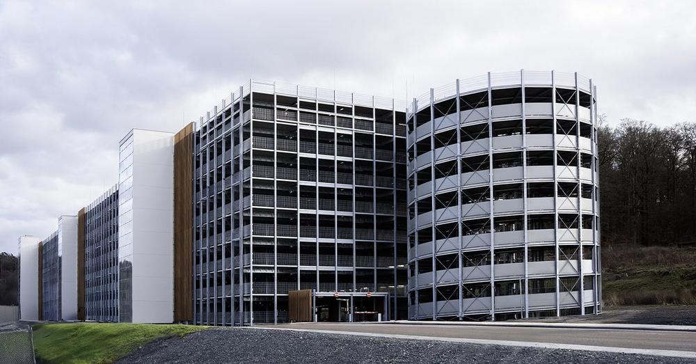 Ein weiteres Kernelement der nachhaltigen Bauweise ist die Photovoltaikanlage auf dem Dach, die mit einer Leistung von 923 kWp klimafreundlichen Strom erzeugt. Damit leistet das Parkhaus einen aktiven Beitrag zur Energieversorgung des Standorts. Umgerechnet wäre die Anlage in der Lage, über 260 Haushalte mit Strom zu versorgen. Auch das Thema E-Mobilität wurde von Beginn an mitgedacht: Bereits jetzt stehen 60 Ladepunkte für Elektrofahrzeuge zur Verfügung, während weitere 60 Stellplätze für eine schnelle Nachrüstung vorbereitet sind. Die technische Infrastruktur erlaubt es zudem, die Kapazität bei Bedarf auf bis zu 785 Ladepunkte zu erweitern.