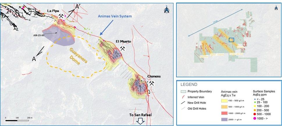 “This new discovery underscores the strong potential for new wide, high-grade silver and gold mineralization in the Panuco district, which has historically seen limited systematic exploration,” commented Michael Konnert, President & CEO. “Applying the same thesis we used to discover the Napoleon Vein in 2020, historic workings at Animas were used to vector this new mineralization. To date, drilling in the area has been limited, however ongoing geologic interpretation of the localized system suggests both grade and widths may increase at depth. We will evaluate plans to follow up on this exciting discovery with further details to be provided in due course.”