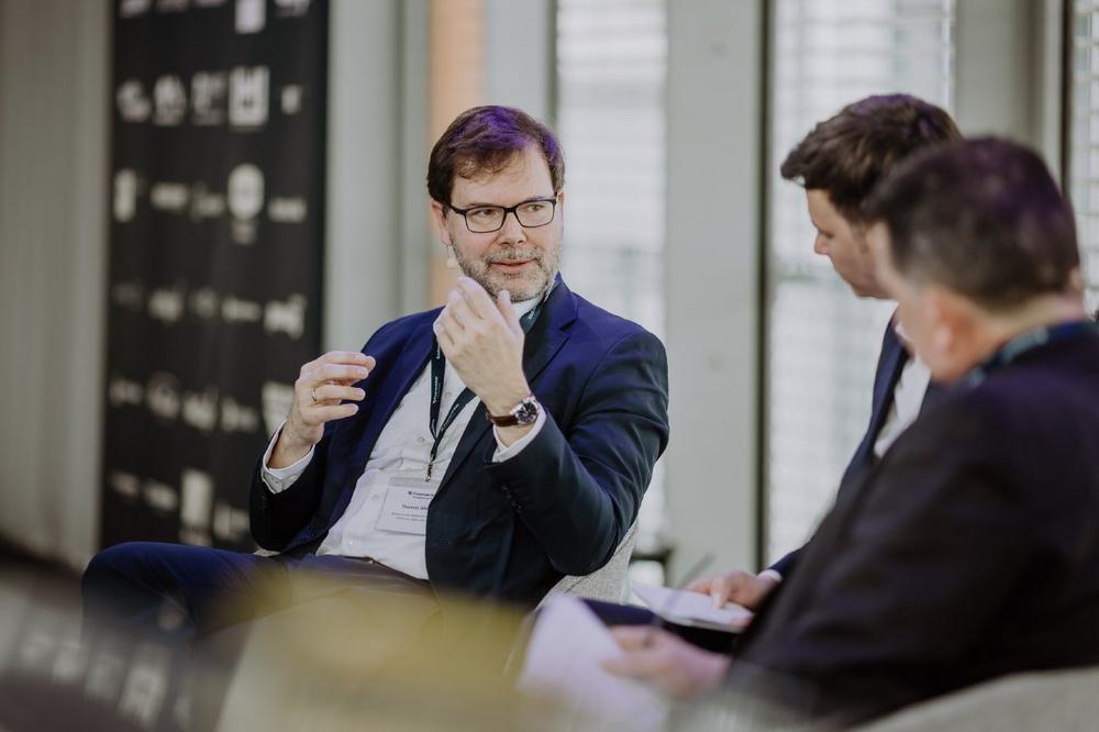 Nach der offiziellen Begrüßung durch Martin Kopf richtete Christian Bernreiter, Bayerischer Staatsminister für Wohnen, Bau und Verkehr, per Videobotschaft das Wort an die Branche. Es folgten ein Fachgespräch zur Zukunft der Infrastruktur mit Thomas Gloßner und Patrick