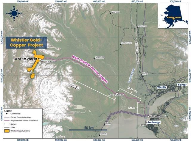 On July 25, 2025, AIDEA announced (here) that it had submitted a Department of the Army ("DA") Individual Permit application for the construction of the WSAP, a 78.5-mile access road across Alaska’s Matanuska-Susitna Borough ("MSB") in south central Alaska. The WSAP will connect Whistler with existing highway, rail, power and port infrastructure in the eastern MSB, where a large and skilled workforce resides in the tri-city municipalities of Anchorage, Palmer and Wasilla. The WSAP will provide year-round public access to currently remote State public lands and private lands within the MSB, as well as areas planned for resource development, including the Whistler Project. The WSAP will begin approximately 1.4 miles west of Alexander Creek and extend to the Whiskey Bravo airstrip and the Company’s Whistler mineral exploration claims and camp site, where it will terminate approximately 2 miles from the Project’s flagship Whistler gold-copper deposit.