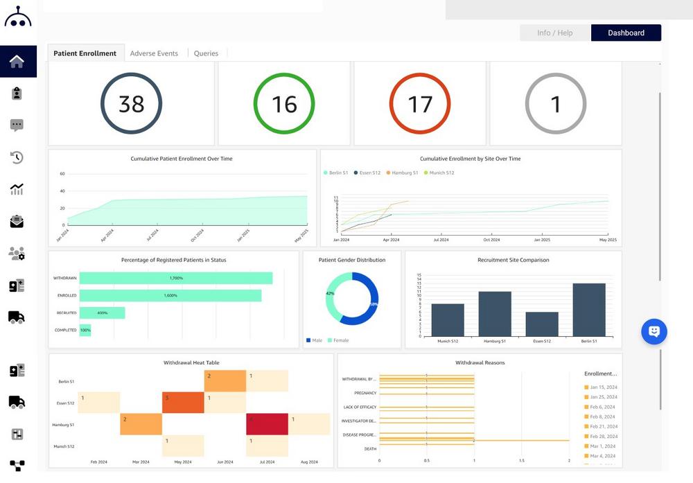EvidentIQ Germany GmbH is proud to announce the launch of StudyMetrIQs, a new interactive dashboard solution designed to elevate clinical trial visibility and decision-making for Clinical Trial Project Management. The solution is EDC agnostic and works with all of EvidentIQs eClinical solutions as well as external EDC systems.